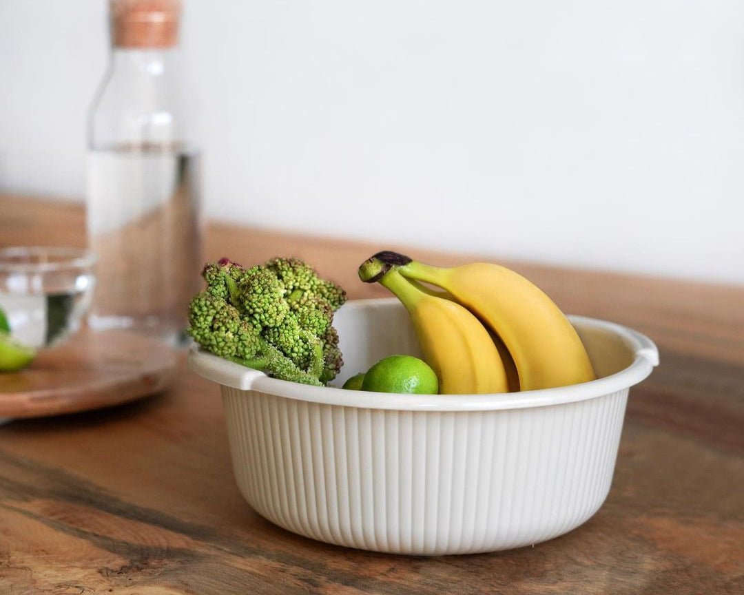 Elevate your kitchen experience with our Duman Colander & Bowl Set 6-Pcs, available in three colors (Grey, White, and off-white). It is designed to add ease and functionality to your kitchen and is made in Iran.