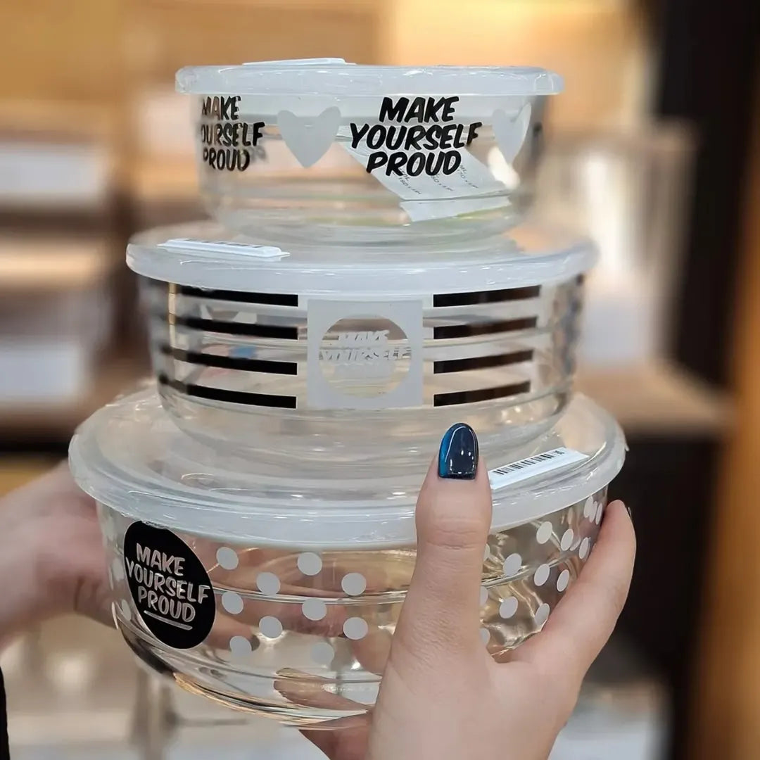 Keep your food fresh and organized with Limon's vacuum glass bowl 3-Pcs Set. These stylish bowls feature airtight dated lids—perfect for storing leftovers, snacks, or preparing meals in advance. Made in Iran.
