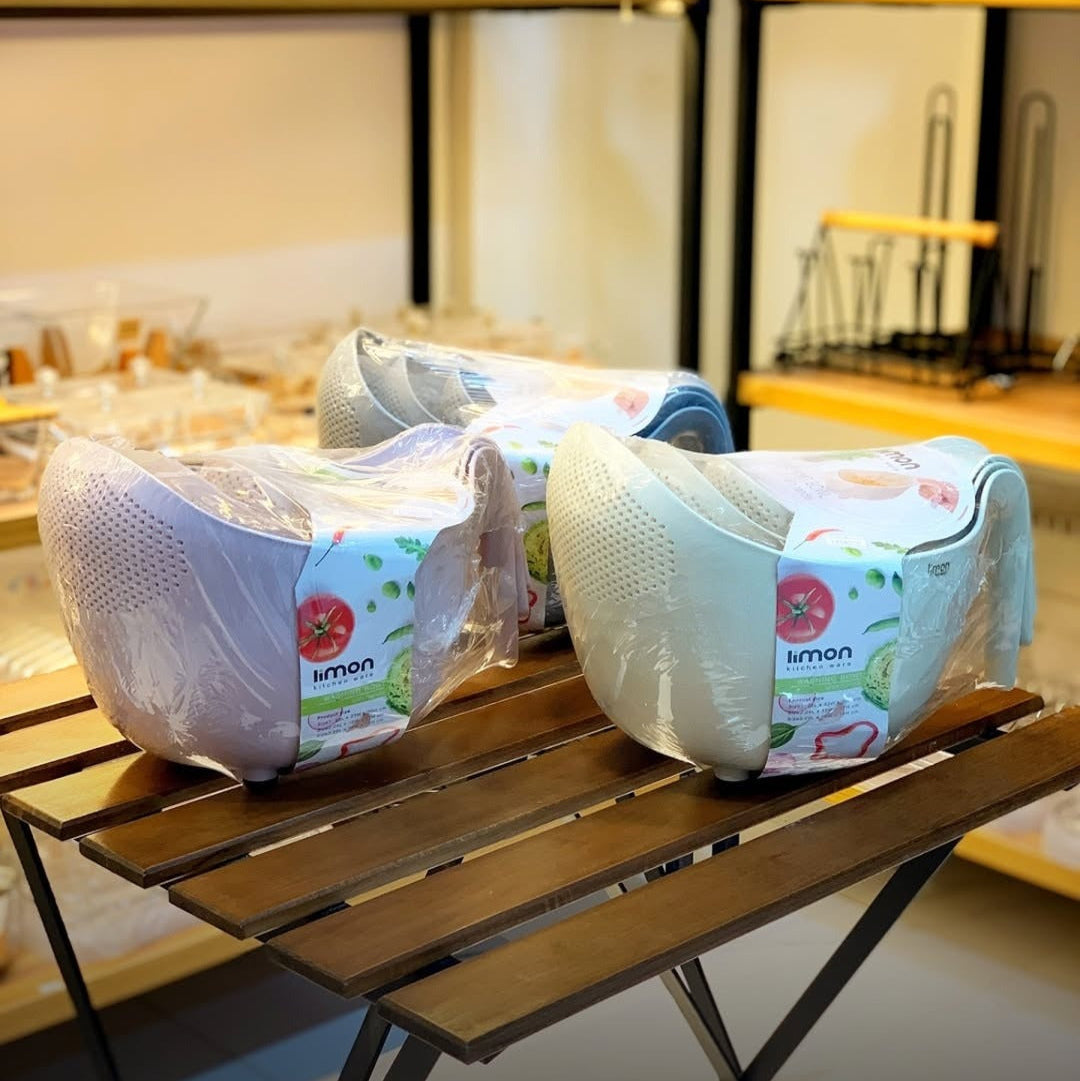 High-quality Original Limon Washing Bowl Set with Handle available in 3 sizes (Small, Medium & Large) and with different color pink, grey, white & beige. It can be used for washing rice, grains, and various vegetables. Made in Iran.