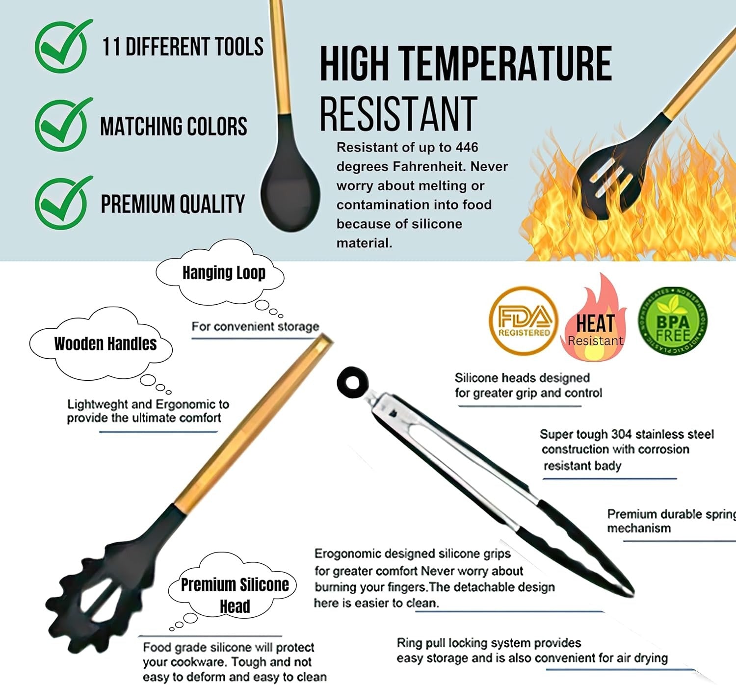 Non-Stick Silicon Kitchen Utensils Set 12-Pcs!